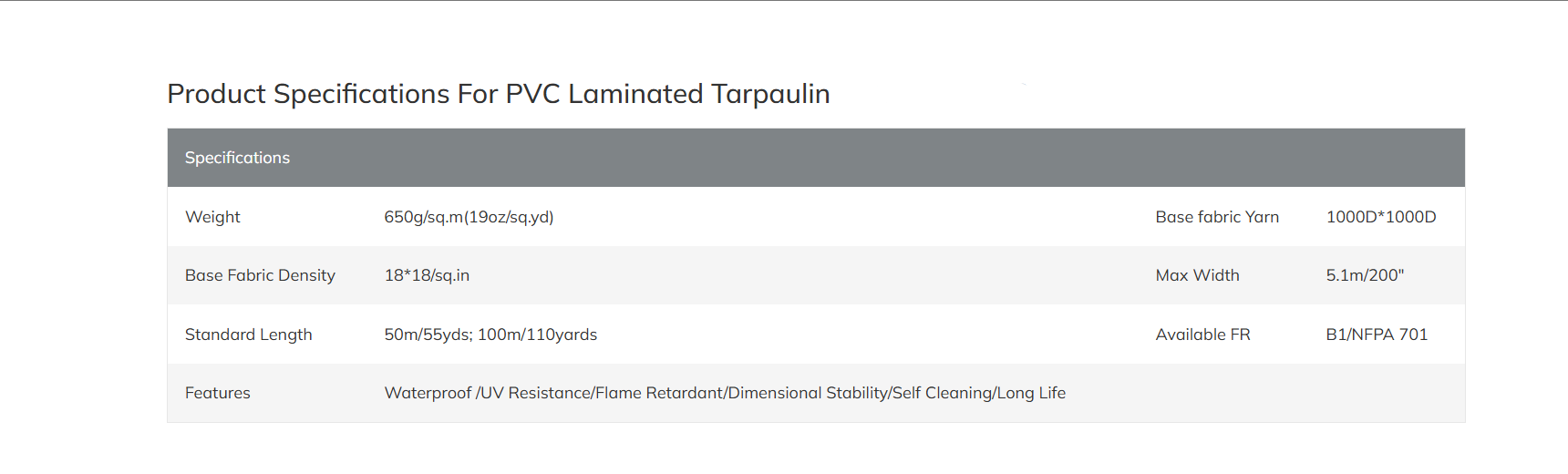 Weight: 650gsm(19oz/sq.yd)