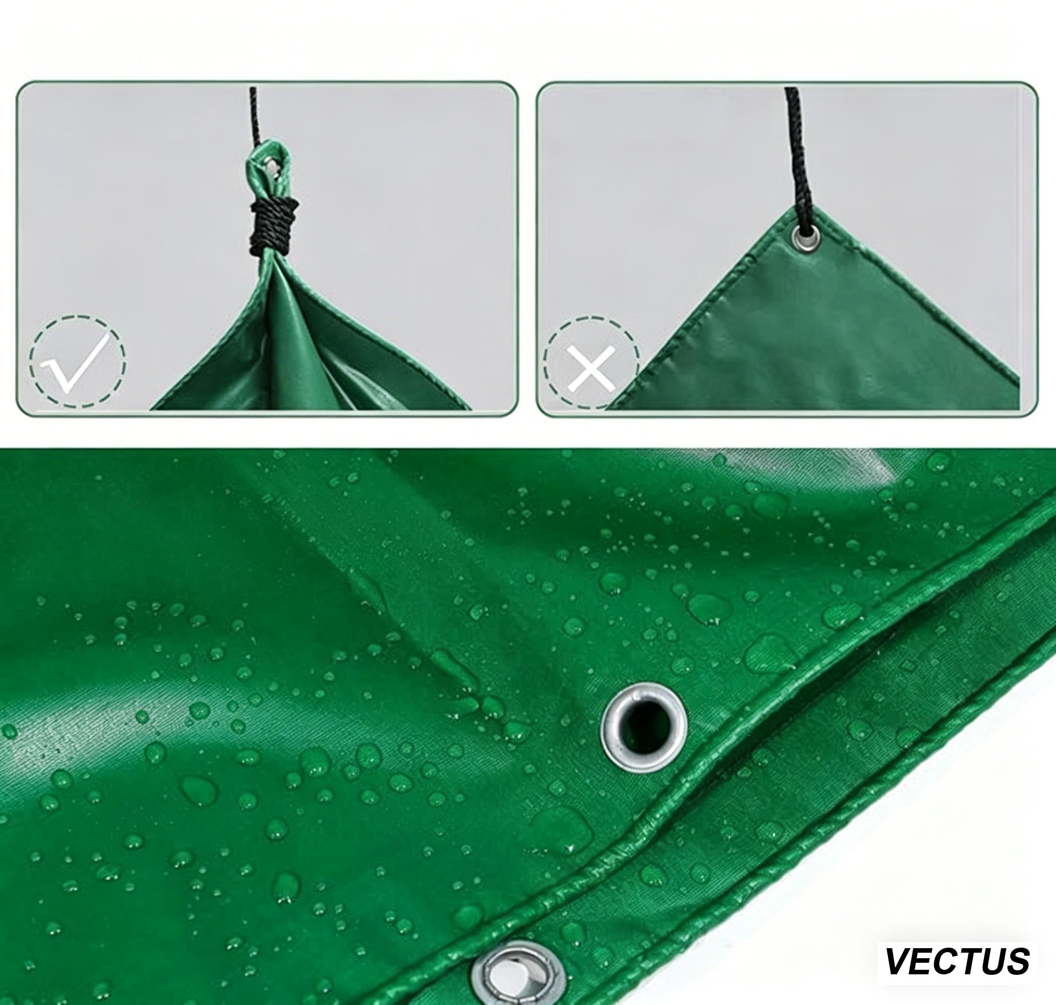 - 【4 Metal Grommets】: The PVC tarp is designed with loop buckles on 4 corners, which allows the tarp to be bundled or fixed on your valuables firmly even in strong wind or heavy rain.