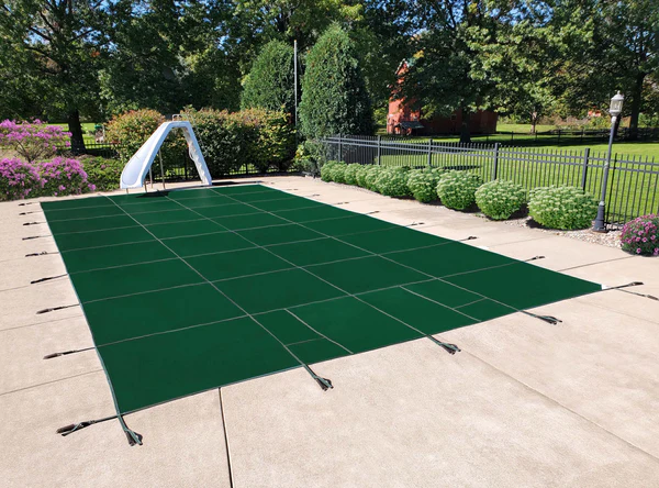 These top of the line pool covers combine a unique mesh weave with superior sewing techniques giving each cover enhanced durability that will hold up under years of extreme weather conditions. The Mesh design allows for rain or snow to easily drain through while still blocking the maximum amount of sunlight and debris. Each cover will provide your family with a safe, reliable pool cover for years to come.