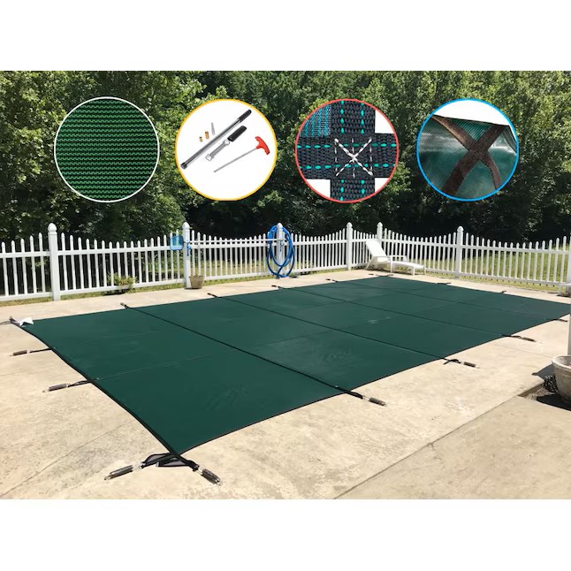 - Construction of mesh with a unique weave of polypropylene material that blocks out algae-producing UV rays and resulting in making springtime pool opening a snap!