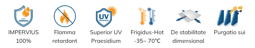 Features: IMPERVIUS, UV Repugnantia, Flamma retardant, Dimensionis stabilitas, Sui purgatio, Longa vita, Acrylic Lacquered.