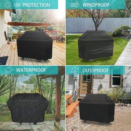 This gas grill cover is made from tear-resistant 210D Oxford fabric, which is weatherproof and prevents constant tearing.With the drawstring at the bottom, the grill cover grips the grill better and will not easy to be blown off in the windy weather.