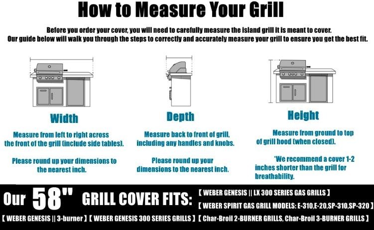 【Widely Used, Fit Most Brands】 --The dimension of the grill cover is 58 x 24 x 46 inch/ 147 x 61 x 117 cm. Fits for most brand grills.The double-layer high-density edging
