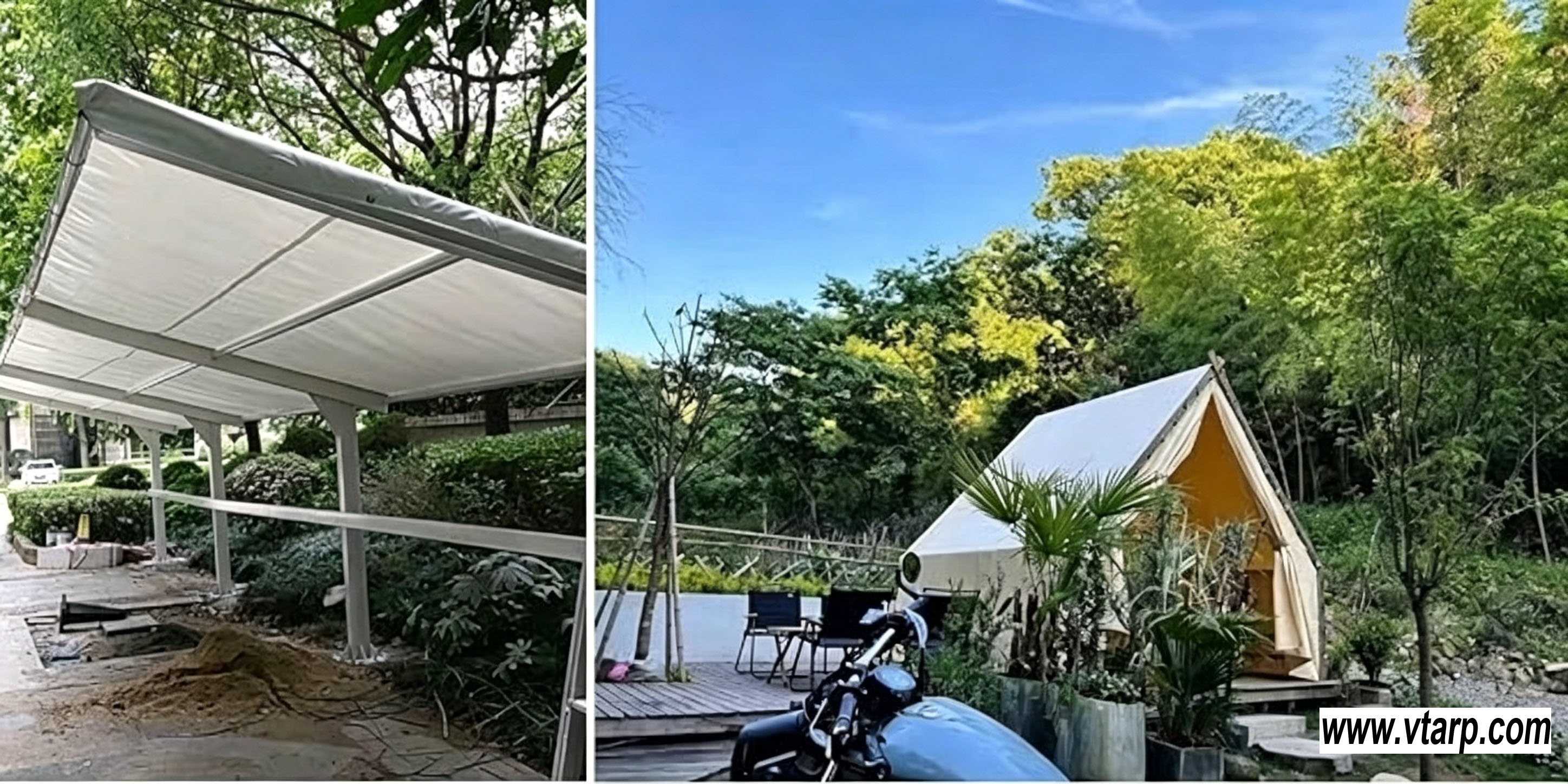 - You can use the ultra-thick tarp throughout the entire year, whether it’s windy, raining, or snowing. The heavy duty canvas is weatherproof, waterproof and UV resistant and it will protect any object from all extreme weather conditions, like roofs, firewoods, cars, pools, outdoor furniture. Providing camping shelter from the wind, rain or sunlight for campers. And as a daily protection for homes such as garden leisure, dog shed construction and so on.