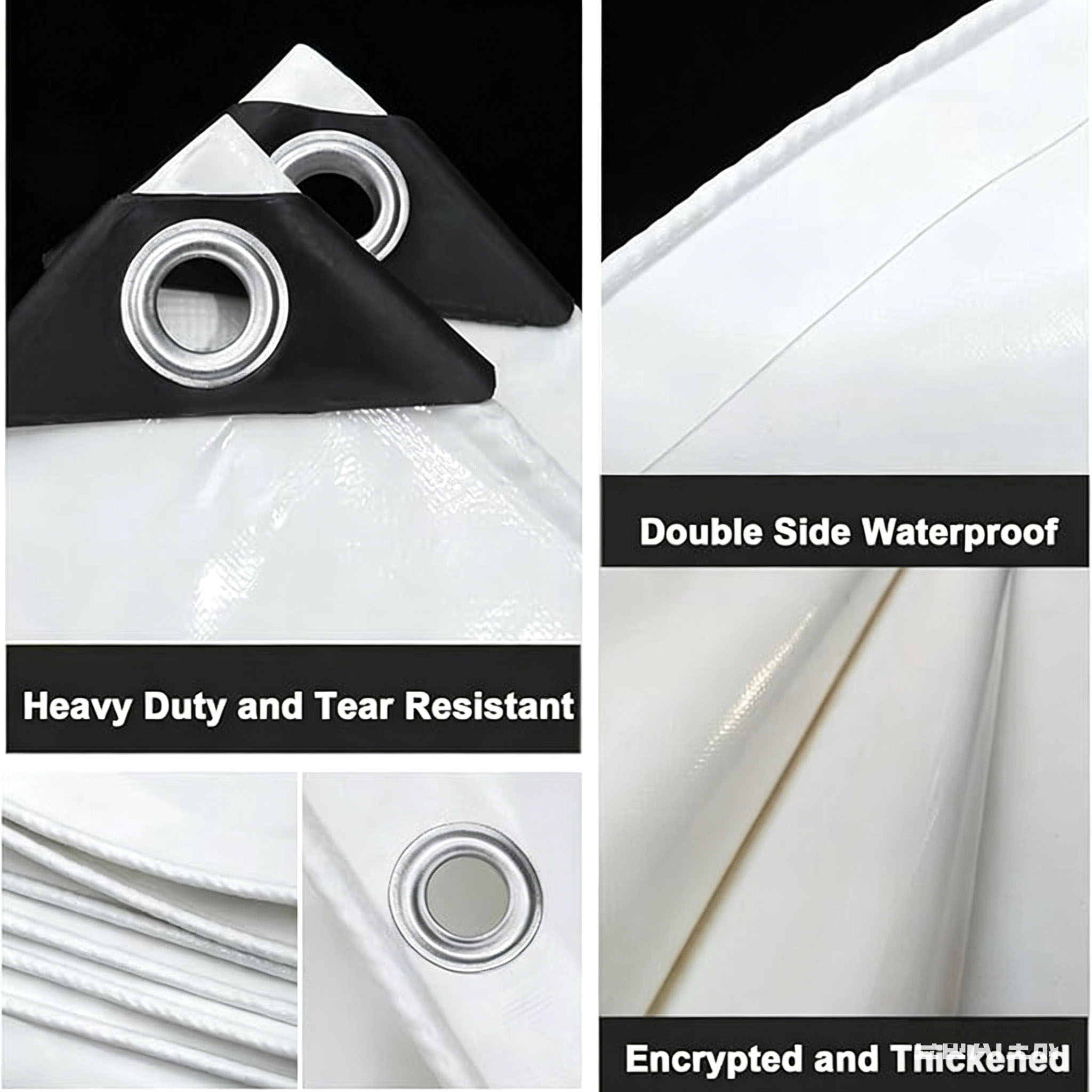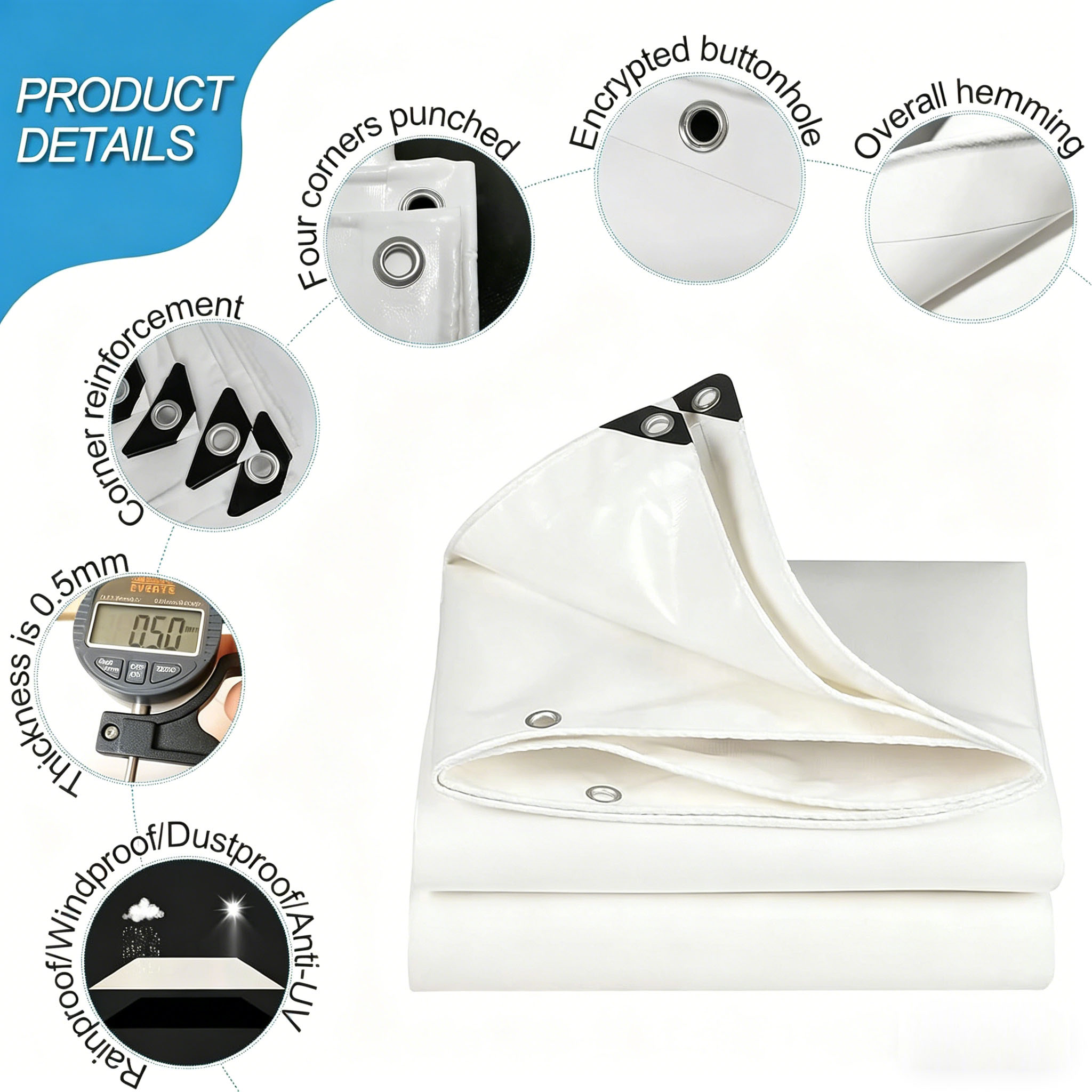 White Tarp Heavy Duty 100% Waterproof Durable PVC Canvas Tarpaulin, with Grommets
