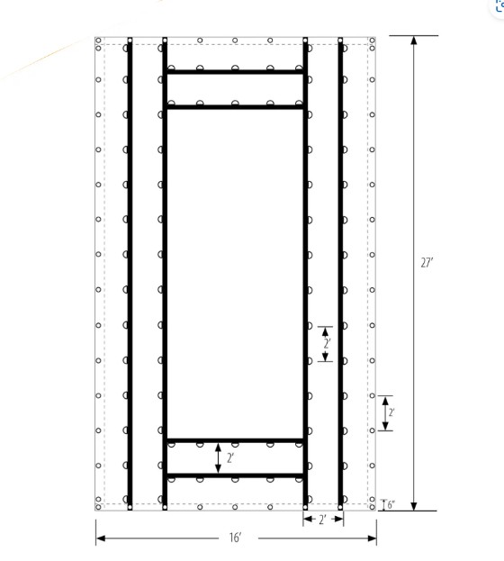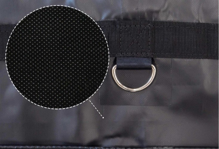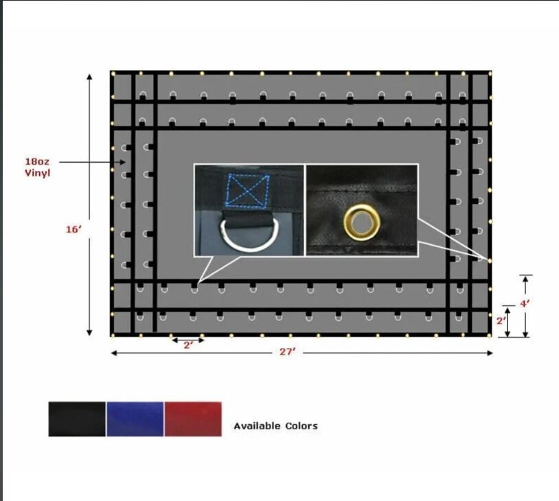 • Steel Tarp with 2 D-ring Rows on All Sides – 16oz